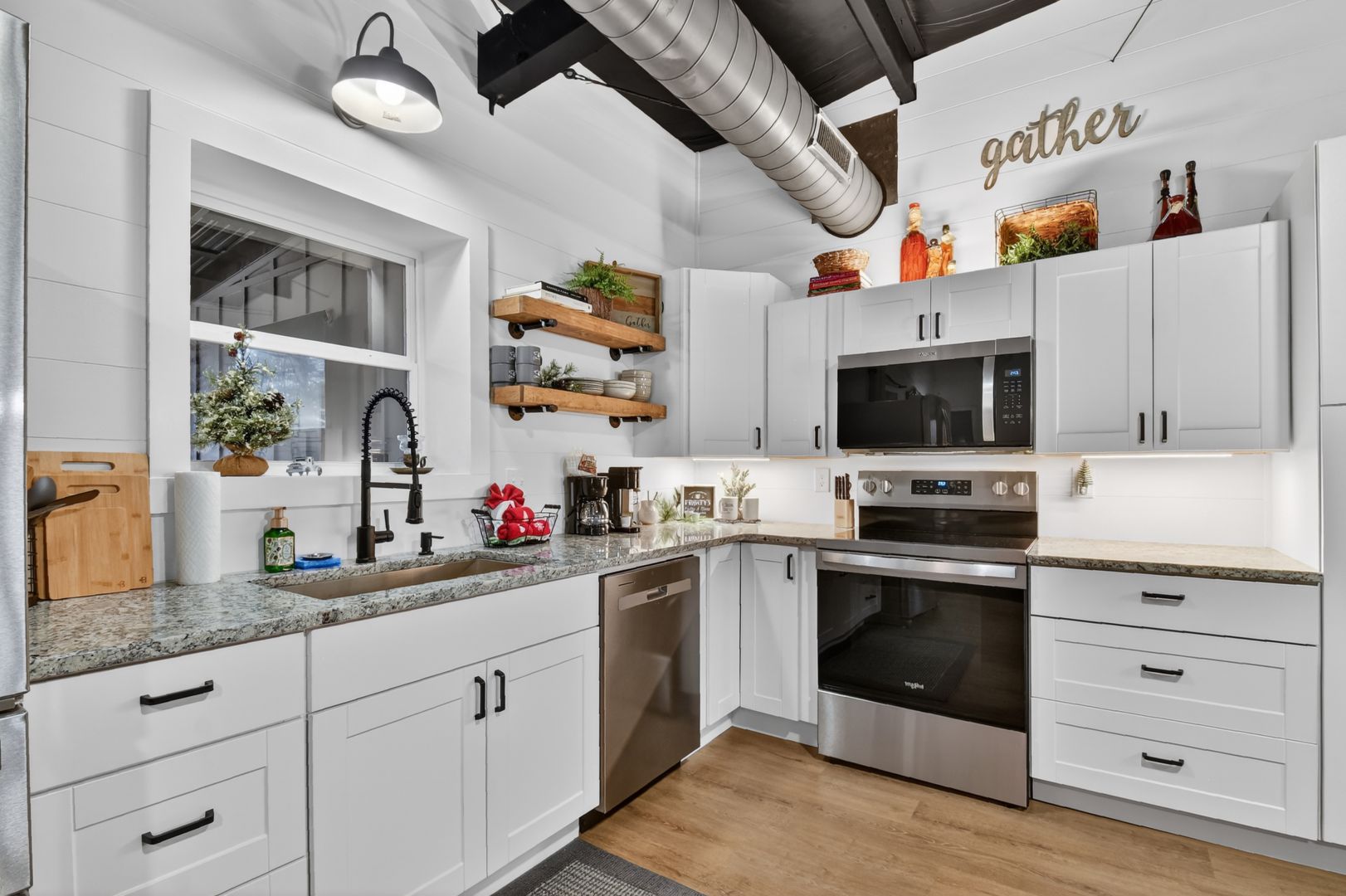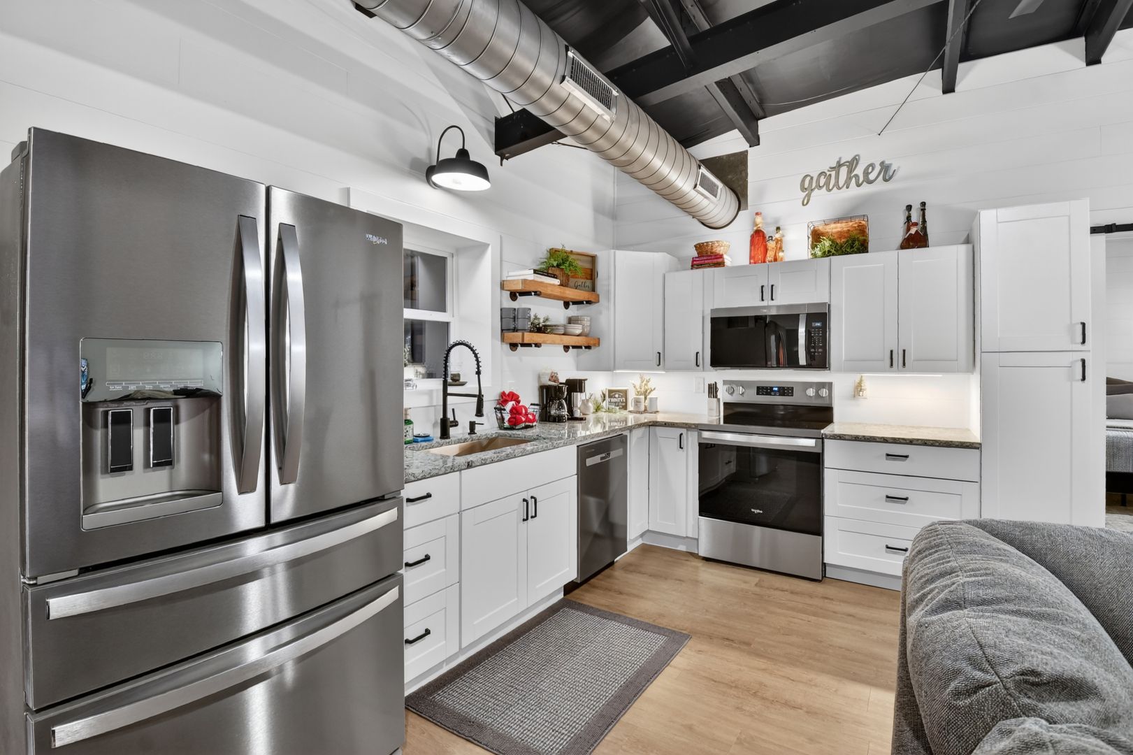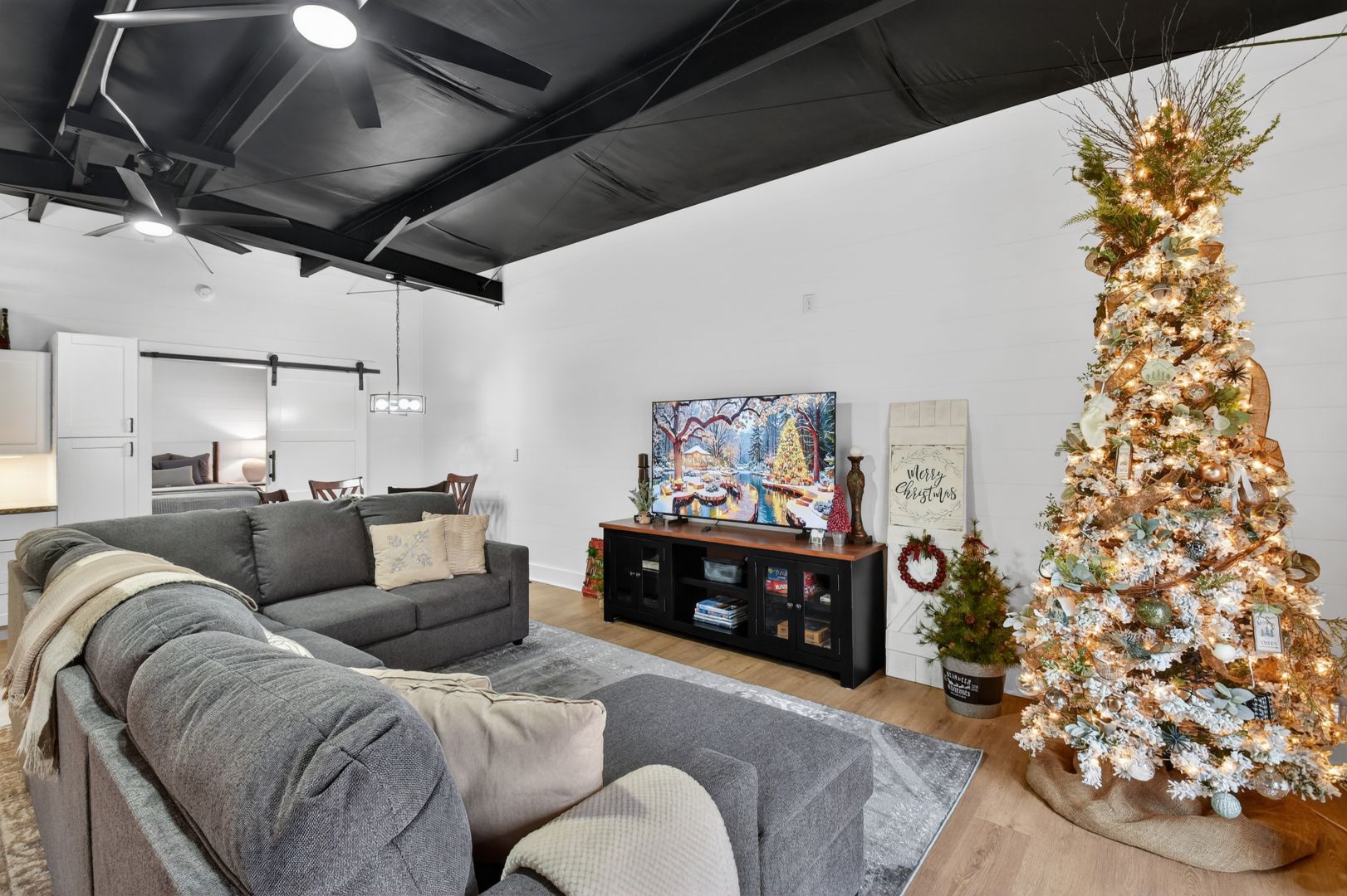 The living area has a large comfy sectional to relax on while watching the 65” smart tv or reading your favorite book. Also have an assortment of board games available for rainy indoor fun.