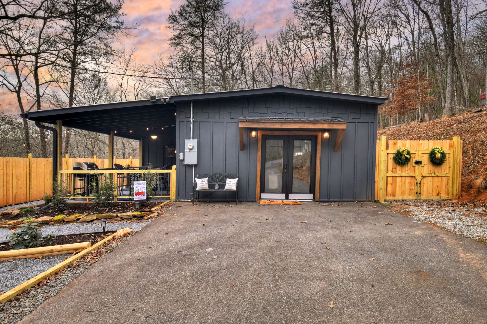 You can also enjoy the fire pit area while sitting in the Adirondack chairs by the privacy fence making s’mores which we provide the s’mores kit. Also fire wood and fire starter provided by us.